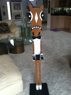 A customer used Tiny Horseshoes on his Dapper Dan the Derby Day Doorman for a church fund raising auction.